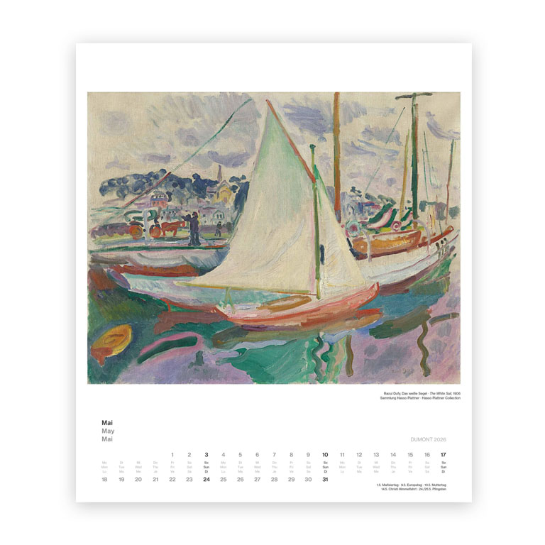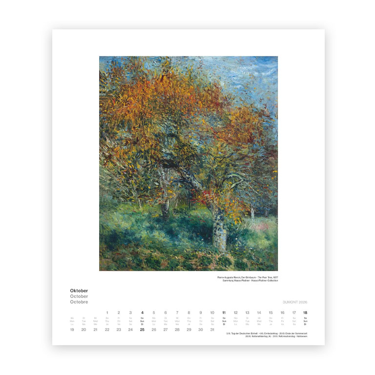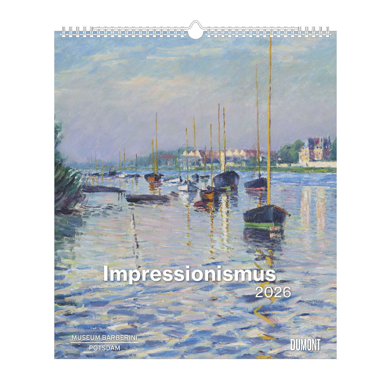 Der Impressionismus Kalender 2026 zeigt zwölf herausragende Werke aus der bedeutenden Sammlung des Museum Barberini in Potsdam, darunter Gemälde von Monet, Boudin, Sisley, Pissarro und weiteren Meistern.